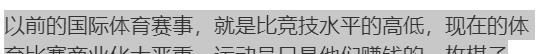 以前的国际体育赛事,就是比竞技水平的高低,现在的体育比赛商业化太严重,运动员只是他们赚钱的一枚棋子!