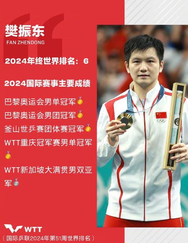 布樊振东WTT世界乒联发布年度总结:大满贯的背后,是无数日夜的努力和汗水。感谢你2024为我们带来的每一个激动人心的瞬间。新的一年愿健康与你相伴,快乐与你同行,继续书写你与乒乓的传奇篇章!