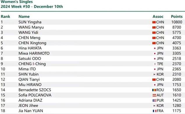 2024年12月,WTT世界乒乓球职业大联盟颁布新规定,其中包括: