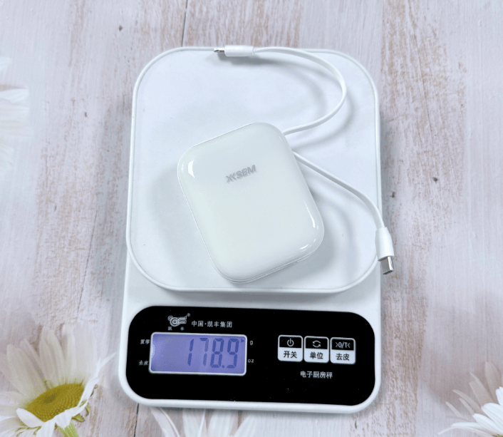 在便携性方面,这款充电宝堪称典范——体积仅相当于一包手帕纸,重量控制在179克,轻松放入衣袋或背包毫无负担。更贴心的是,它采用机线一体化设计,内置Type-C和Lightning双接口数据线,即插即用,还能将线缆当作提手使用,真正实现随身携带“零压力”。