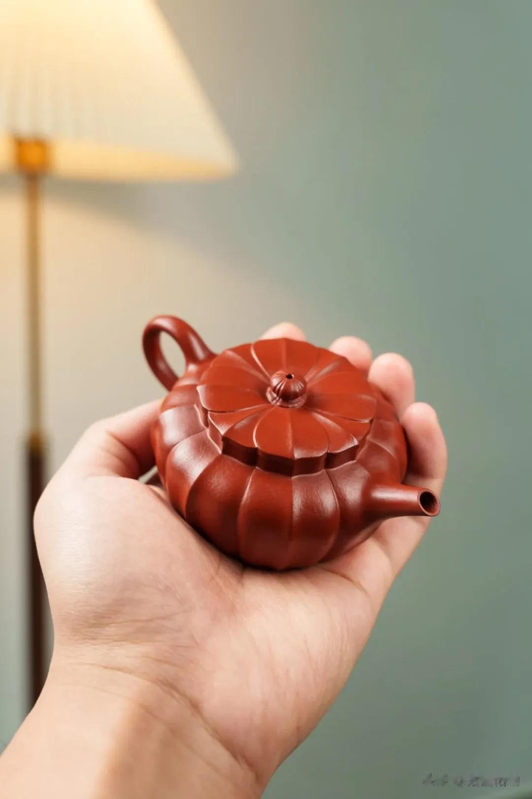 紫砂壶之美,更是动态的、与掌心交融的美。老朱泥的砂质,在经年茶汤的滋养与手掌的抚触下,会焕发出深沉内敛的宝光,这便是“养壶”的乐趣。而这把菱花小品,因形制精巧,线条丰富,尤为“上手把玩出彩”。一手可握,盈盈在掌,拇指轻抚过挺立的棱线,食指勾住壶把的曲度,每一次转侧,都能感受到泥料的温润与造型的韵律。它邀请的不仅是品饮,更是一段亲密的、充满触觉愉悦的相处。