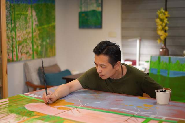 安庾心(1975年出生于台北),以其大胆而充满情感的绘画风格而闻名。他的作品巧妙地融合了抽象与具象艺术,超越了传统的东西方艺术界限。他的创作受到童年对花园的记忆以及在美国接受的景观设计教育的影响,构图井然有序,强调了观看的多样视角。安庾心广泛吸收了多种美学元素,包括禅文化、生态主义思想、乌尔里希·贝克的“风险社会”理论、布鲁诺·拉图的“自然-文化平行论”、威廉·布莱克的文学作品,以及从哈佛大学的艺术家那里学习的现代主义、建筑和设计作品,比如理查德·福尔曼的城市生态学。