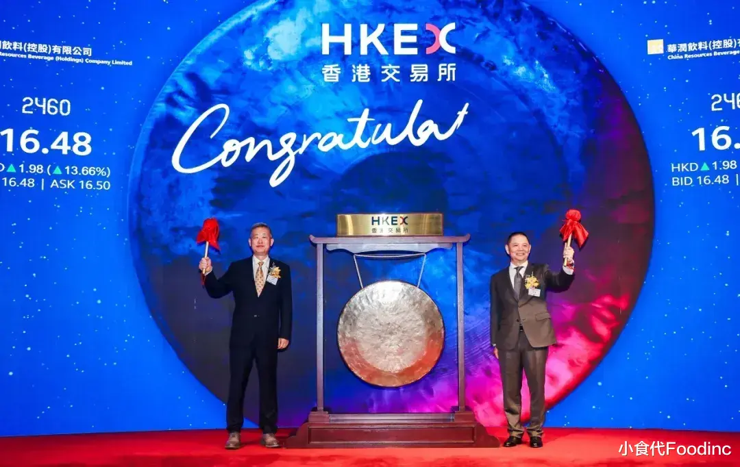 张伟通任内较为低调,最让外界记住的“高光时刻”之一是在2024年10月23日,华润饮料正式在香港交易所主板挂牌上市。为此事筹备多时的张伟通,当日与华润集团董事长王祥明一起敲响了上市锣声。该公司当天的总市值突破386亿港元,成为华润集团旗下第18家上市企业。