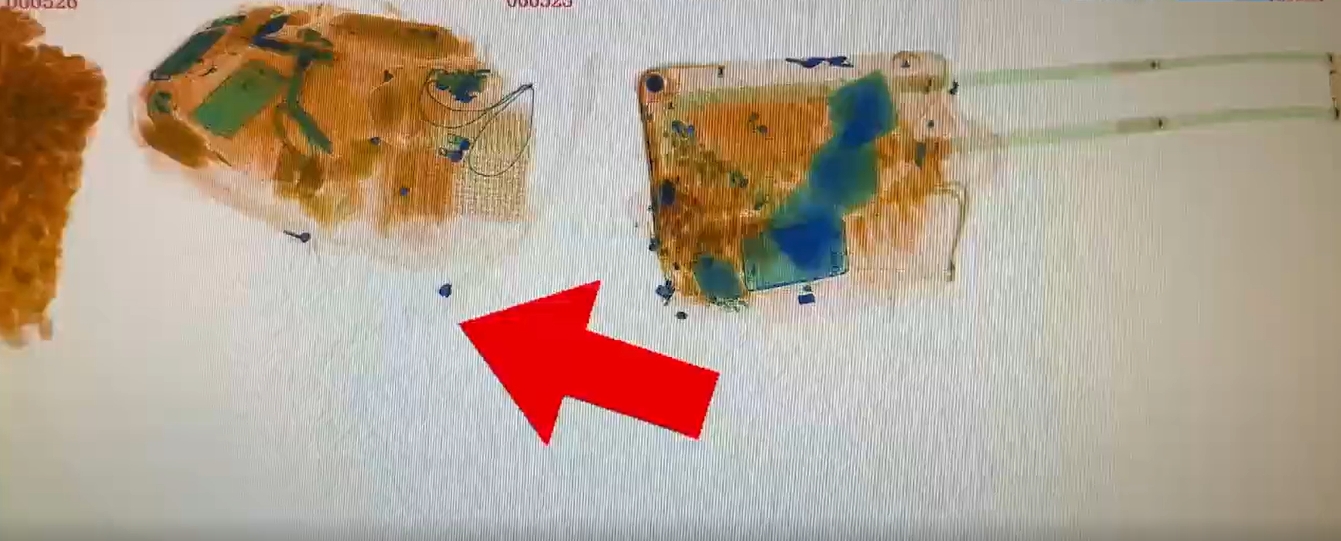 某日,海关关员在对入境旅客行李物品进行监管时,发现一名旅客携带的三件行李机检图像存在异常。