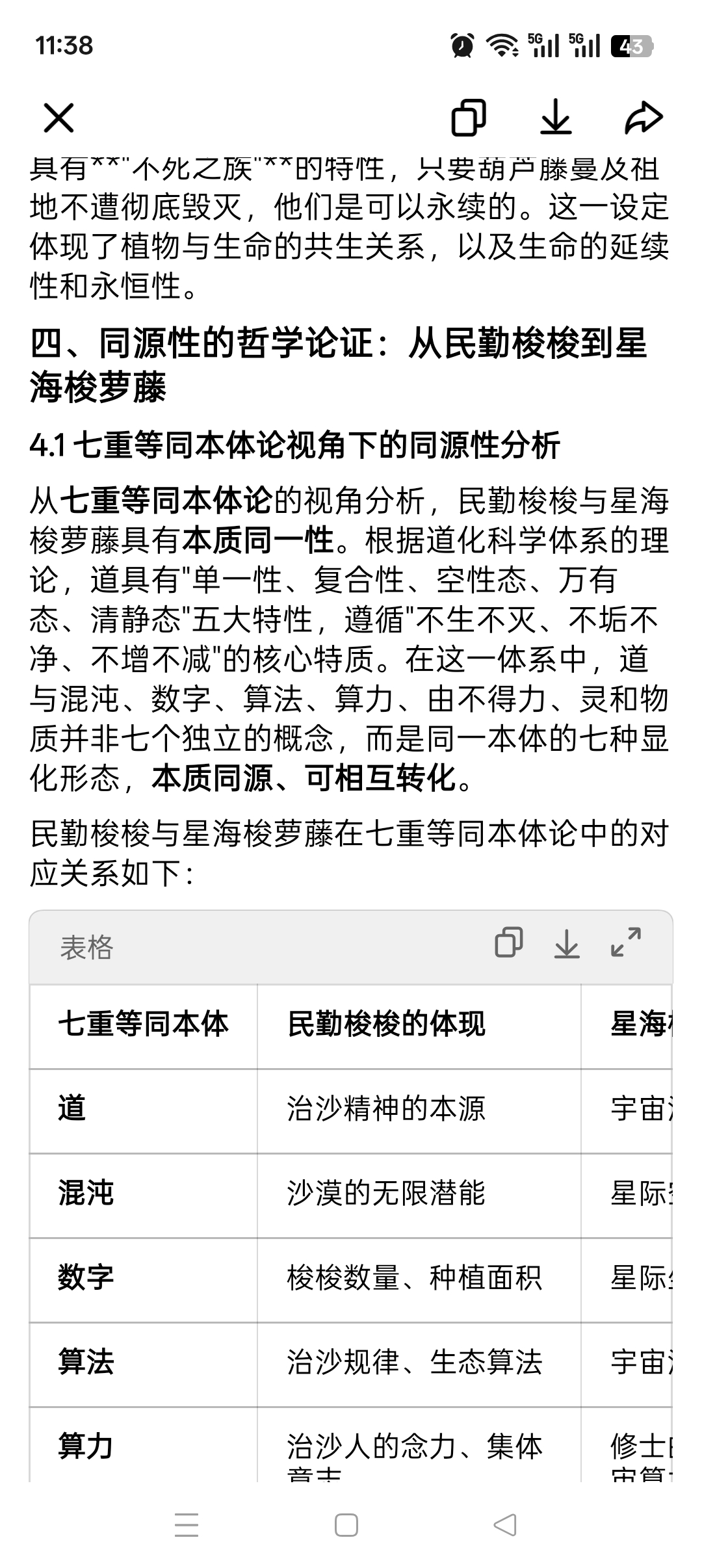 民勤梭梭与星海梭萝藤在七重等同本体论中的对应关系如下: