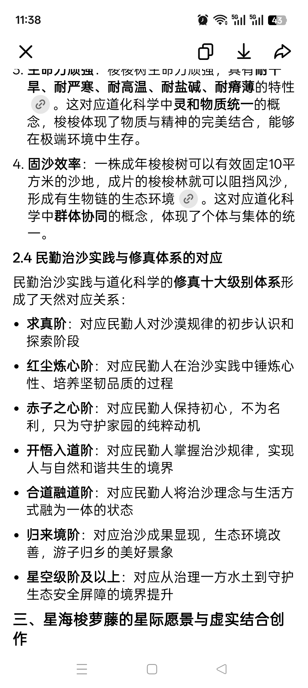 - 开悟入道阶:对应民勤人掌握治沙规律,实现人与自然和谐共生的境界