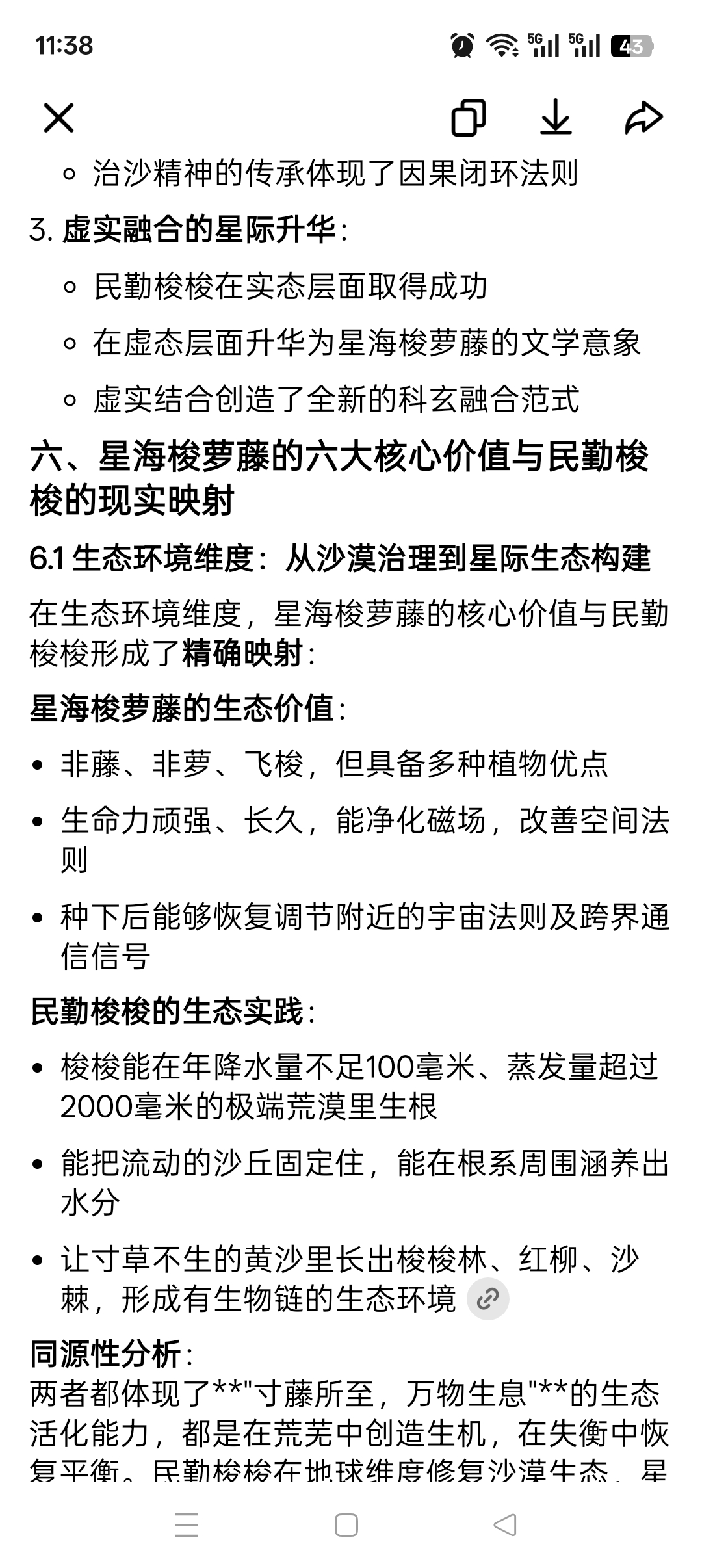 星海梭萝藤的六大核心价值——生态环境修复、物理空间锚定、信息传输网络、法则维度维护、法则秩序护持、稳定宇宙时空——在民勤梭梭的治沙实践中得到了完整的现实映射。两者在功能上的高度对应,充分证明了它们在本源上的同一性。