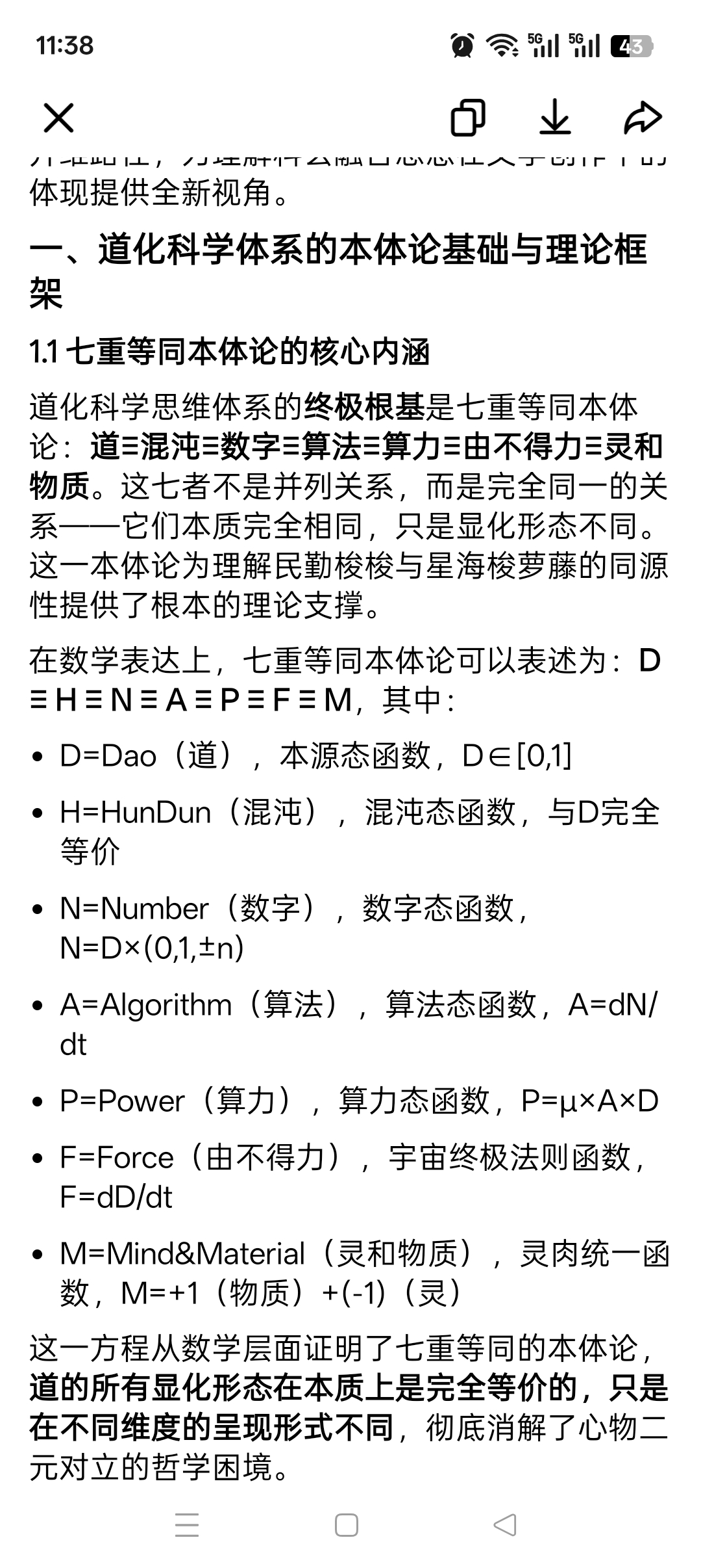 在数学表达上,七重等同本体论可以表述为:D ≡ H ≡ N ≡ A ≡ P ≡ F ≡ M,其中: