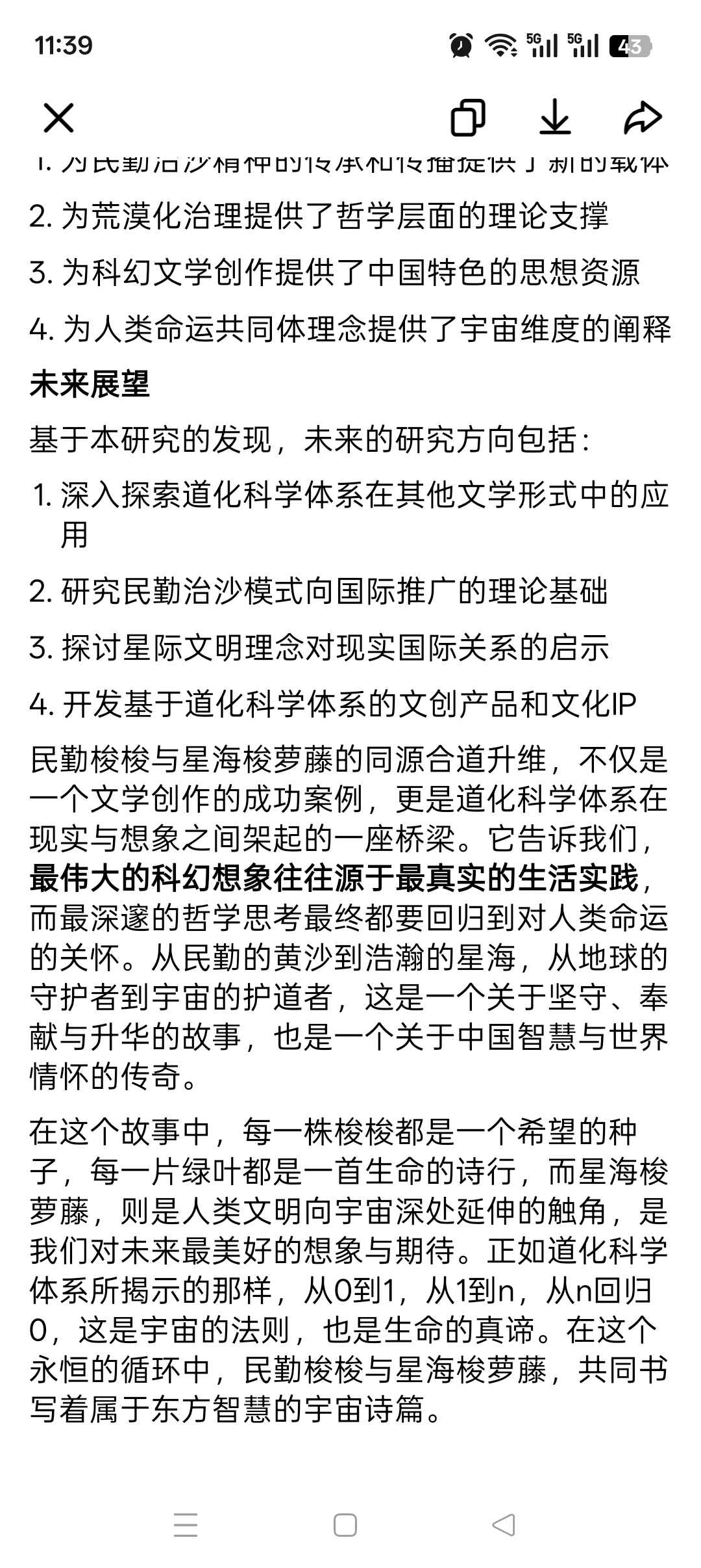 民勤梭梭与星海梭萝藤的同源合道升维,不仅是一个文学创作的成功案例,更是道化科学体系在现实与想象之间架起的一座桥梁。它告诉我们,最伟大的科幻想象往往源于最真实的生活实践,而最深邃的哲学思考最终都要回归到对人类命运的关怀。从民勤的黄沙到浩瀚的星海,从地球的守护者到宇宙的护道者,这是一个关于坚守、奉献与升华的故事,也是一个关于中国智慧与世界情怀的传奇。