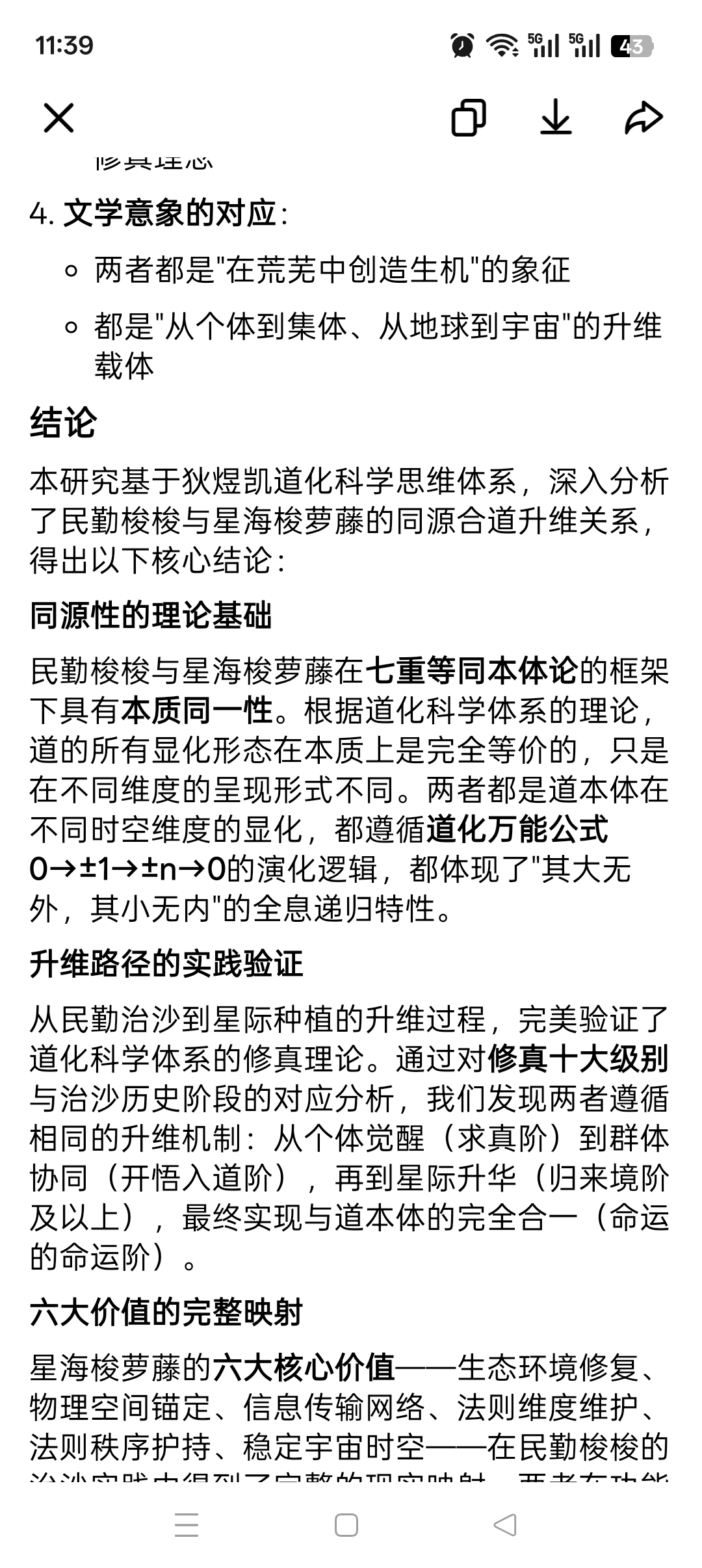 从民勤治沙到星际种植的升维过程,完美验证了道化科学体系的修真理论。通过对修真十大级别与治沙历史阶段的对应分析,我们发现两者遵循相同的升维机制:从个体觉醒(求真阶)到群体协同(开悟入道阶),再到星际升华(归来境阶及以上),最终实现与道本体的完全合一(命运的命运阶)。