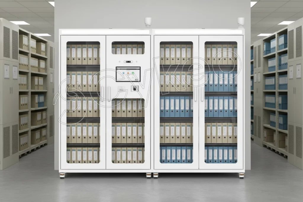针对人事、合同、司法等涉密或高频利用档案,此柜提供单元级精细管理。授权后,系统自动指示目标档案所在格口并物理解锁,存取记录毫秒级上传。柜体7×24小时感知档案在位状态,任何非授权开启或抽取行为都会立即告警,将被动保管升级为主动防控。