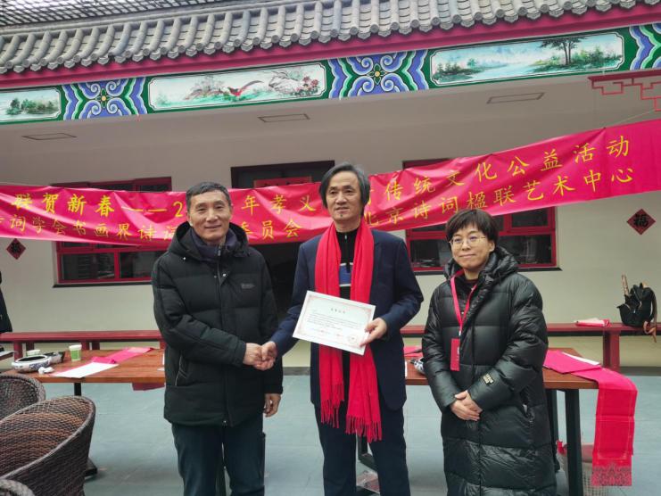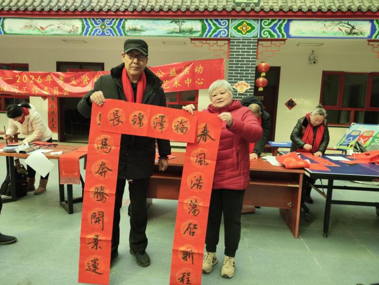 此次活动不仅是一场文化公益盛宴,更是一次传统文化的生动传承。在笔墨与欢笑中,孝德基因得以延续,邻里情谊得以升温,政企村多方协作的合力得以彰显,为2026年乡村文化振兴写下了精彩开篇,也让中华优秀传统文化在新时代焕发出更为璀璨的光彩。值得一提的是,因新春临近时间紧张,北京诗词楹联艺术中心将顺延相关活动安排,为孝义营村15位80岁以上高龄老人量身打造专属嵌名联。所谓嵌名联,即把老人姓名巧妙嵌入上下联之中,形成独一无二的七言楹联作品。目前中心已完成样板设计,后续将邀请全国楹联名家精心创作联文,再由知名书法家挥毫书写,最后经专业装裱制成精美书法作品。届时,闫丽伟理事长将带领团队与谷书利书记一同登门入户,亲手将这份承载着文化敬意与新春祝福的作品及专属礼品送到每位老人手中,让孝行暖意跨越时光,持续传递在古村的街巷之间。