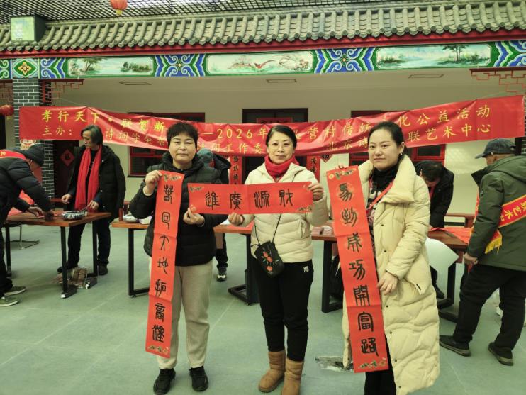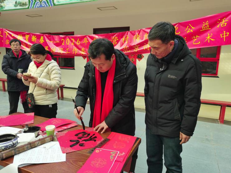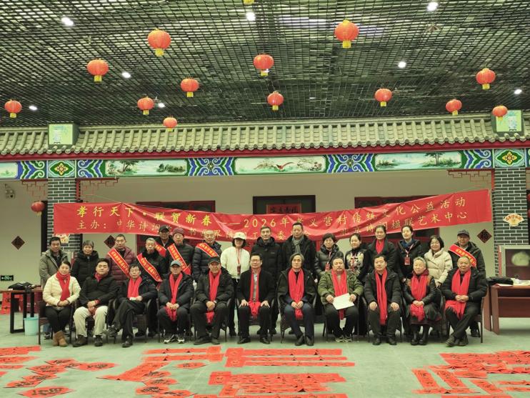 红灯映古村,笔墨润孝行。2026年新春伊始,“孝行天下 联贺新春”传统文化公益系列活动在北京大兴区青云店镇孝义营村文化广场温情落幕。这场由大兴区青云店镇政府、青云店孝义营村、中华诗词学会书画界诗词工作委员会、北京诗词楹联艺术中心联合主办的文化盛宴,以600年古村孝义文化为根基,汇聚诗词书法界名家力量,在政企村多方联动下,让孝亲敬长的传统美德与新春暖意交织,成为乡村文化振兴的生动实践。