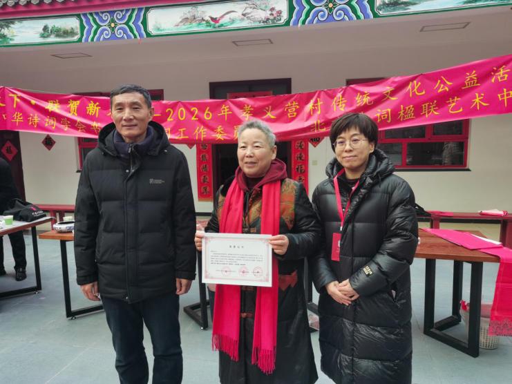 北京诗词楹联艺术中心理事长闫丽伟表示,2026年是中心开启文化公益新征程的关键一年,此次与孝义营村的合作是新篇章的重要开篇。她衷心感谢诗词界、书法界艺术家多年来的鼎力支持,感谢青云店镇政府的协调保障与孝义营村两委的全力配合,未来中心将持续深耕传统文化传播,推动更多公益活动走进基层,让诗联书画艺术浸润乡土,让孝行之光点亮更多乡村的新春。