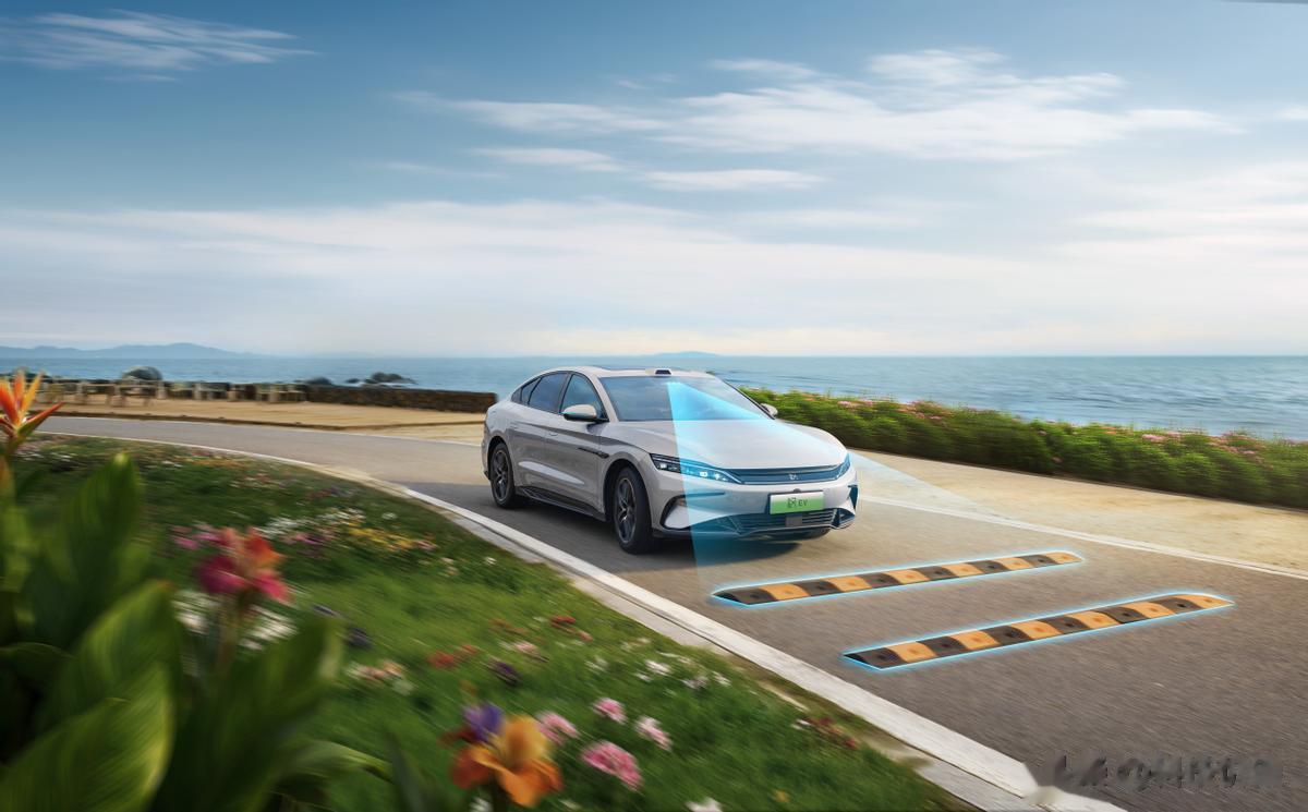 与此同时,汉家族始终坚持整车智能才是真智能。汉长续航版搭载了一套高阶智能底盘——云辇-C智能阻尼车身控制系统。其与主动预瞄功能完美配合,可识别前方15米路况,精准调节悬架阻尼,无论是突然出现的坑洼还是连续减速带,都能从容化解。