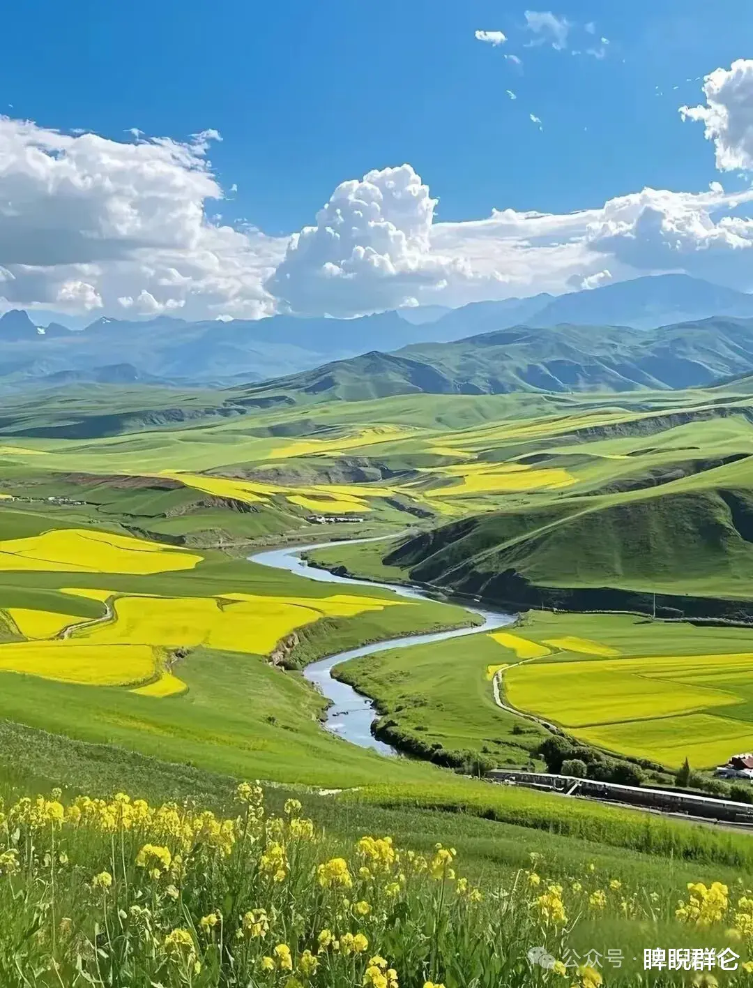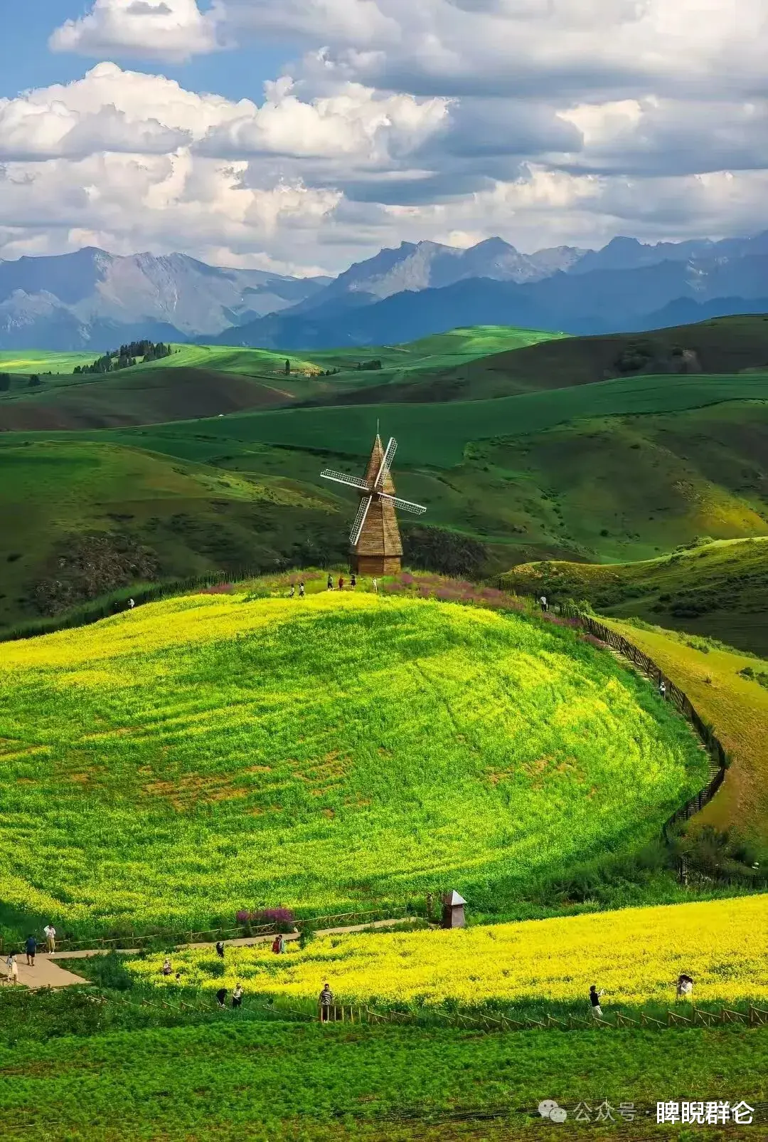 最佳机位:景区专设的观景台是最佳拍摄点,能够将麦田、雪山和天空一并收入镜头。