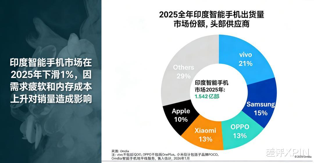 国内虽然靠 “人车家生态 ” 、独一份的背屏以及跟徕卡的深度联名卖得不错,但在印度、欧洲这些老根据地,被竞争对手和地缘政治折腾得够呛,全年出货微跌 2%。