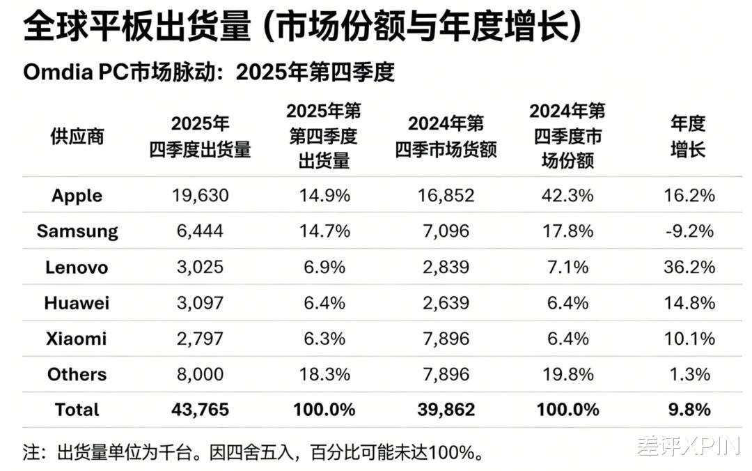 其中华为继续蝉联国内平板第一,第四季度还发了 MatePad Edge,硬是把 PC 级的桌面体验塞进了平板里,这招 “ 降维打击 ” 确实狠,苹果虽然排第二,但日子没以前滋润了。