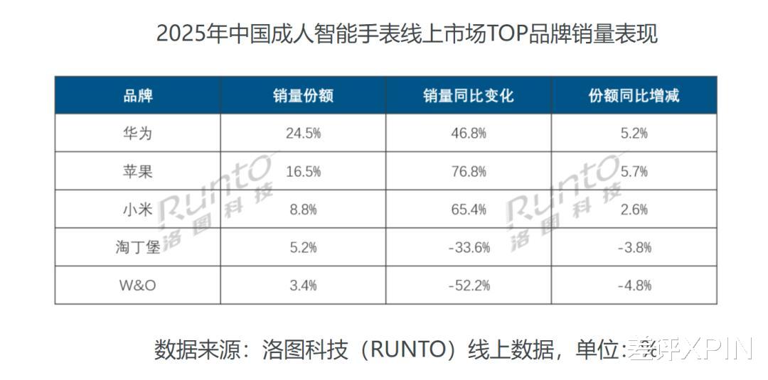 洛图科技数据显示,2025 年中国成人智能手表线上销量 2134.1 万台,同比增长 15.6% ;销售额 244.8 亿元,同比增长 50.8% ,平均价格是 1147 元。