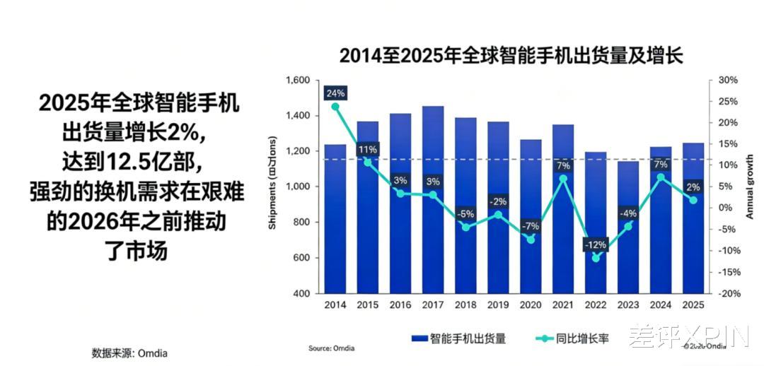 根据 Omdia 的数据,2025 年全球智能手机出货量增长了 2% ,达到了 12.5 亿部,创下 2021 年以来的新高。