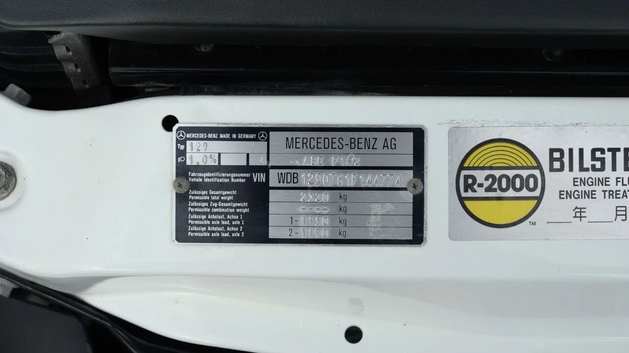这台SL的故事始于一辆标准的、极地白(149)配色的奔驰SL 600。作为R129世代的旗舰版本,SL 600本身已是90年代豪华敞篷车的标杆,搭载6.0L V12发动机,原厂394马力的动力在当年已足够震撼。但它并未止步于此,在出厂后便直接进入AMG位于Affalterbach的总部,开启了一场彻底的性能蜕变。