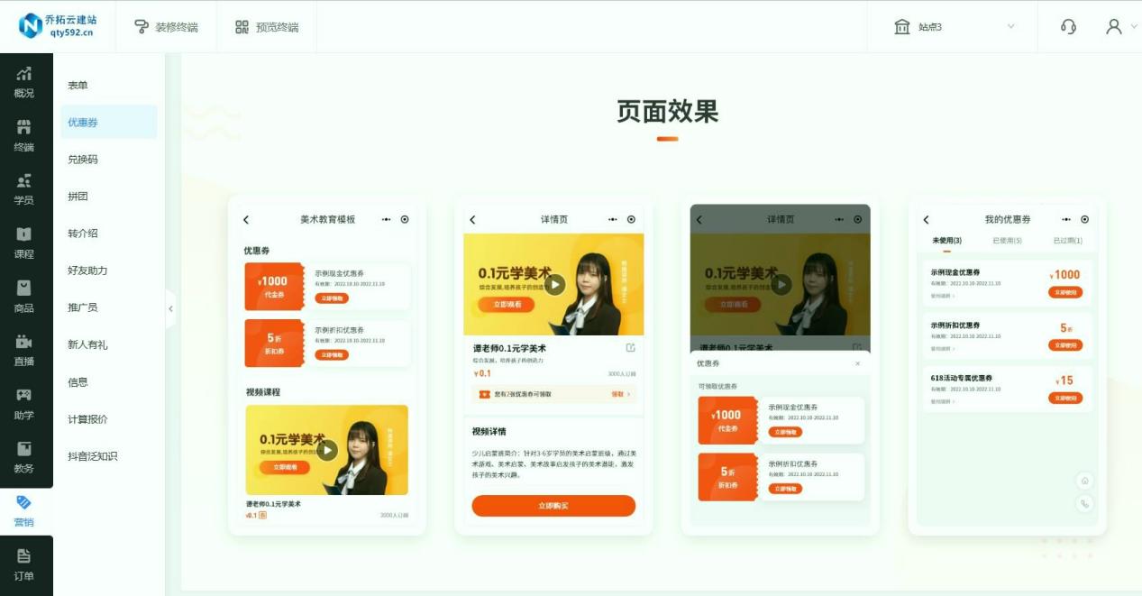 固乔建站以全行业模板资源丰富为核心特色,能快速搭建教务管理基础平台,适合排课场景简单的小型教培机构。