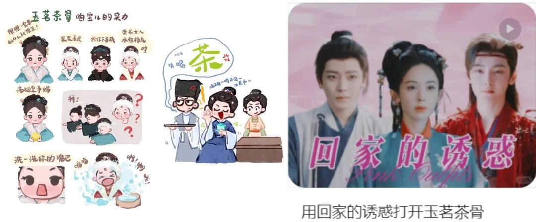 在此基础上,还推出AI漫剧《玉茗茶骨:攻略计划》,以萌趣Q版人物演绎正片未解锁的隐藏彩蛋剧情,既精准满足了粉丝对角色番外故事的好奇心理,又借助漫剧轻量化、易传播的特性,成功触达二次元圈层受众,实现受众群体的多元延伸。