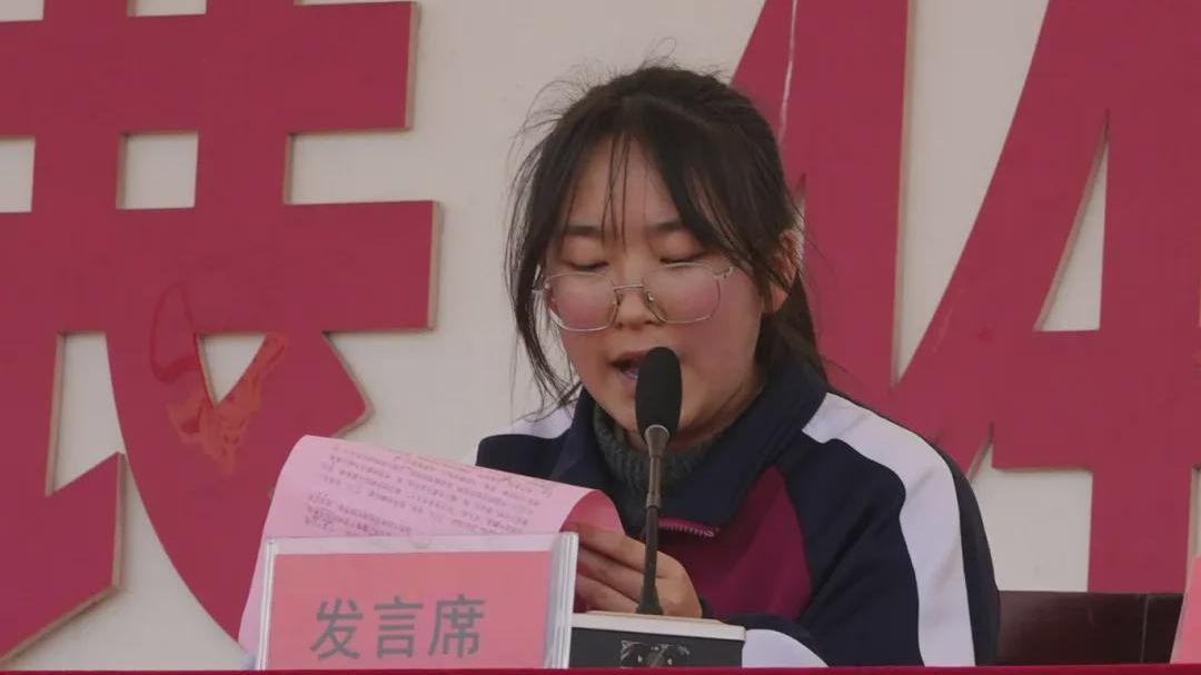 高三(17)班李蔚作为百日冲刺学生代表,以青春之名发出冲锋号召。她回望三年寒窗的栉风沐雨,感恩师长的谆谆教诲、同窗的携手同行,更号召全体高三学子,在最后的百日里以梦为马、科学备考,将焦虑化为动力,将挫折当作阶梯,用每一分的踏实努力,奔赴六月的星辰大海。发言字字铿锵,句句入心,点燃了全体高三学子的逐梦豪情。