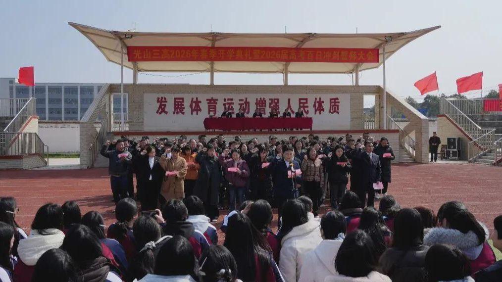 春山可望,步履不停;百日竞渡,破浪前行。此次春季开学典礼暨高考百日冲刺誓师大会,既是新学期的动员令,更是高三学子百日拼搏的冲锋号。春风里,光山三高全体师生已整装待发;百日中,三高人将以梦为马、以汗为泉,以昂扬的斗志、务实的作风,在耕耘中收获成长,在拼搏中铸就辉煌。愿少年们执笔为剑,不负寒窗十载;乘风破浪,圆梦六月考场,共创光山三高2026年高考的新荣光!(贾海燕)