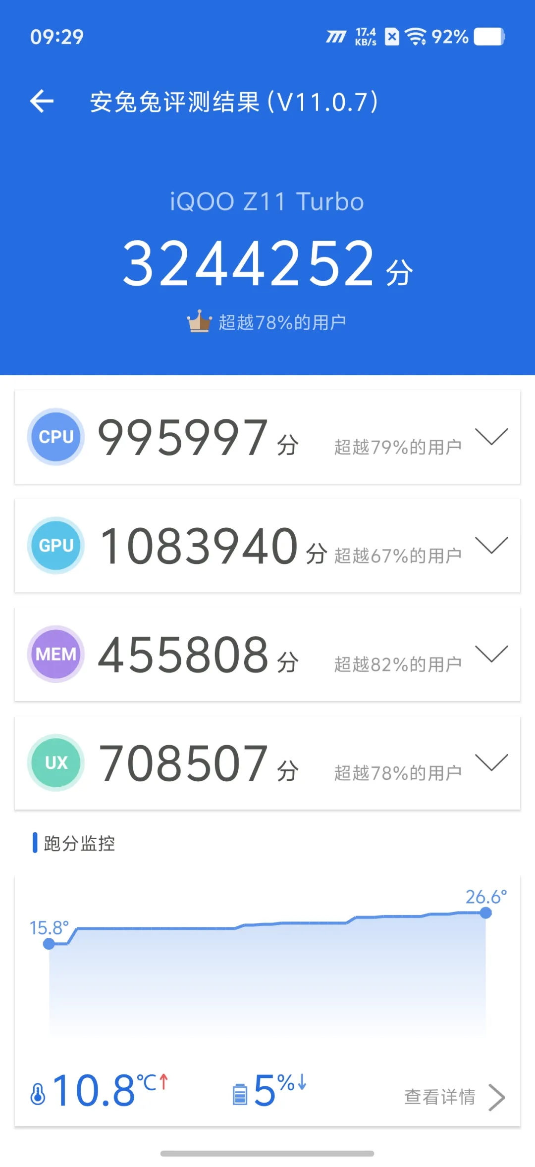 iQOO Z11 Turbo的安兔兔V11实测成绩