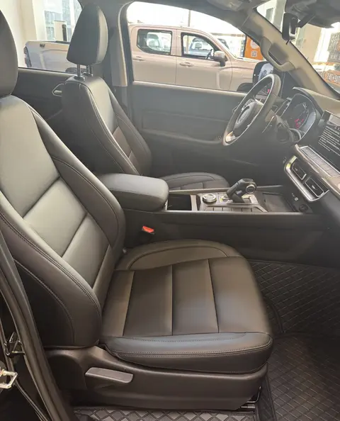 为区别于普通版车型,山地版进行了一系列针对性装备。其中最显著的是原厂配备了K-MAN品牌氮气减振器,旨在提升车辆在颠簸路面的悬挂支撑性与耐久性。同时,车辆标配了265/60 R18规格的全地形轮胎,并换装了黑色轮眉与侧踏。货箱部分配备了防滚架与货箱宝。车内则增加了专属的棕黑双色内饰。