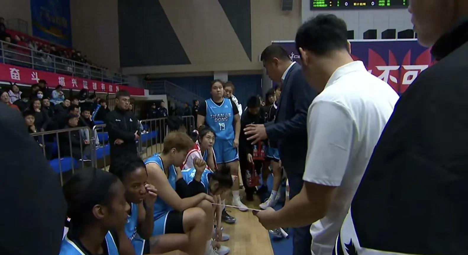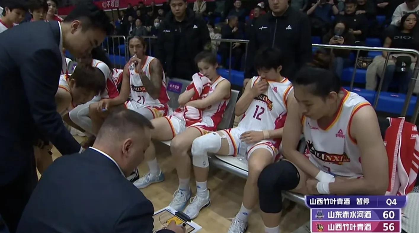 最后五分。陈玉婕又失误了。翟若云进攻犯规,山东队失误转换球权。翟若云三分依然不中。万殷殷三分也不中,拉塞尔中投打进,方敏抢断反击打进。64比62,山西连追号3分,山东被迫叫停。