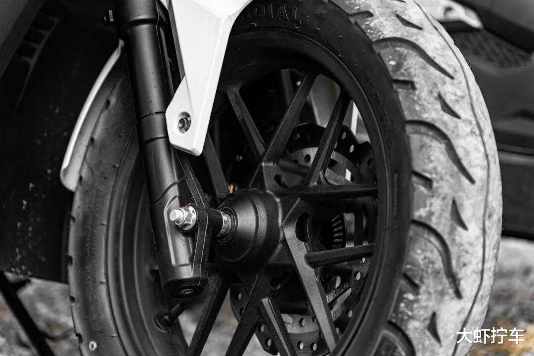 虽然使用了看起来相对硬派的视觉风格,但这款“猎鹰”的内里其实仍然是以轻松好骑的城市代步+偶尔郊游作为自身定位,前悬挂采用一对长行程的单联板正置液压减震;后悬结构则是下置发动机吊架的双侧外置气瓶减震,原厂配备的轮胎也并不是非铺装倾向的龟背胎,它较高的车身姿态和长减震行程只是为了更舒适的应对城市中的路面起伏和破损。