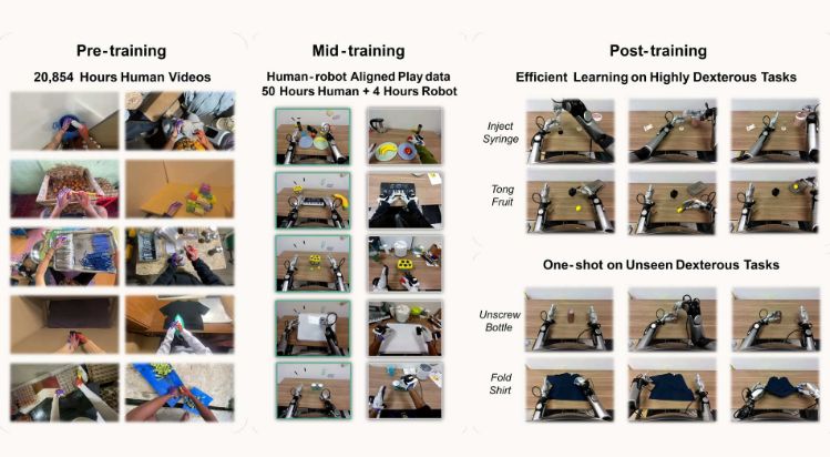 NVIDIA推出的EgoScale是一个三阶段的培训管道,用于扩展机器人遥操作灵活性。
