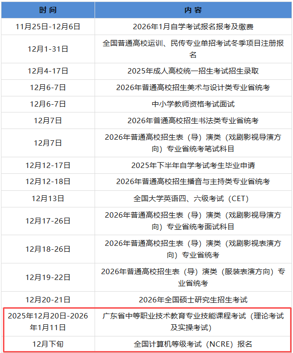 考试院最新公布,12月招生考试历来啦!新易学小编这两个考试中职生一定要关注!!!