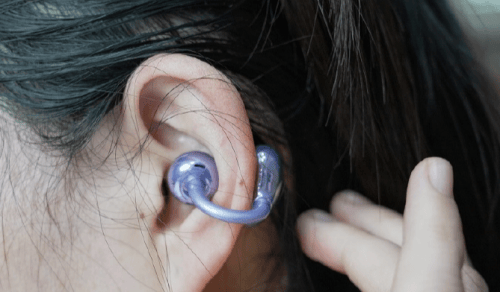 3.佩戴门槛更低:你只要找准耳廓凸起的位置夹好就行,不用根据耳道大小挑选耳塞尺寸,特别适合耳廓偏小、耳道狭窄或者不习惯入耳式佩戴的人。