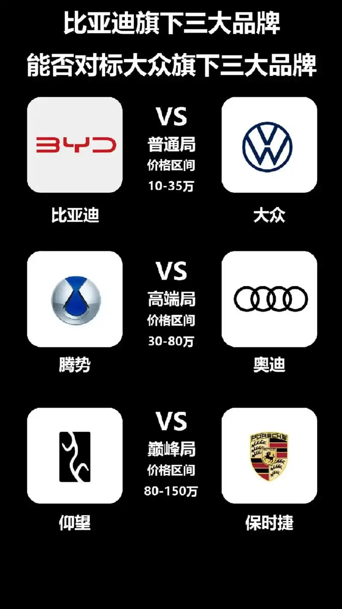 这也是比亚迪连续第四年,成为中国品牌阵营中的第一名。为什么要在一份包含国内外的品牌中,特意说比亚迪第一名?因为今年它首次纳入非国产品牌,这直接改变了榜单的性质。它不再仅是国内品牌的成绩单,而是一份 “中国市场价值排行榜” 。所以今年的榜单,和前三年的,有比较大区别。如果不加入非国产品牌,那么比亚迪仍然是第一。我们继续说:比亚迪四度登顶的一个细节是,至少今年还是减去了腾势、仰望的品牌价值,因为这两个品牌分别以50亿、25亿的品牌价值,列在了这份榜单上。所以比亚迪在这个榜单上的含金量还是挺足的。