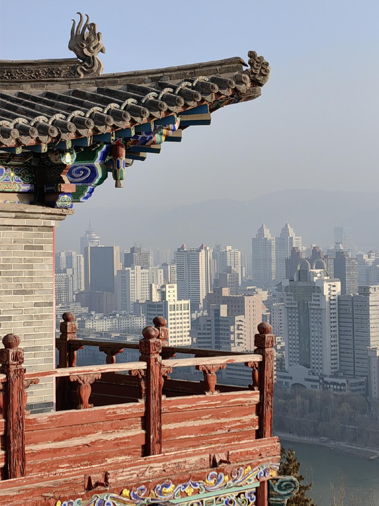 白塔山见证着黄河千年的故事,站在山顶远眺,兰州城的现代高楼与传统建筑对比超级震撼。