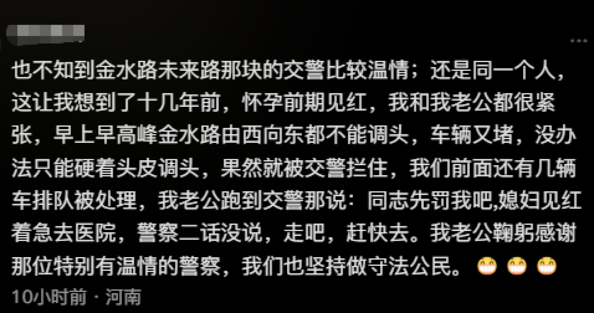 评论区里充满了对杨先生家庭的鼓励与祝福,更给郑州交警人性化的执法方式和耐心态度点赞。“郑州交警真的很捧,经历过的都知道”“感谢郑州交警,温暖了这个冬天”“河南郑州的这位接电警察心怀善念,怎不让人感动,愿有更多的这样的警察!”“有温度的执法,不是为罚款而罚款!给郑州交警点赞”……(新闻报料请私信微信公众号“大河看见”)