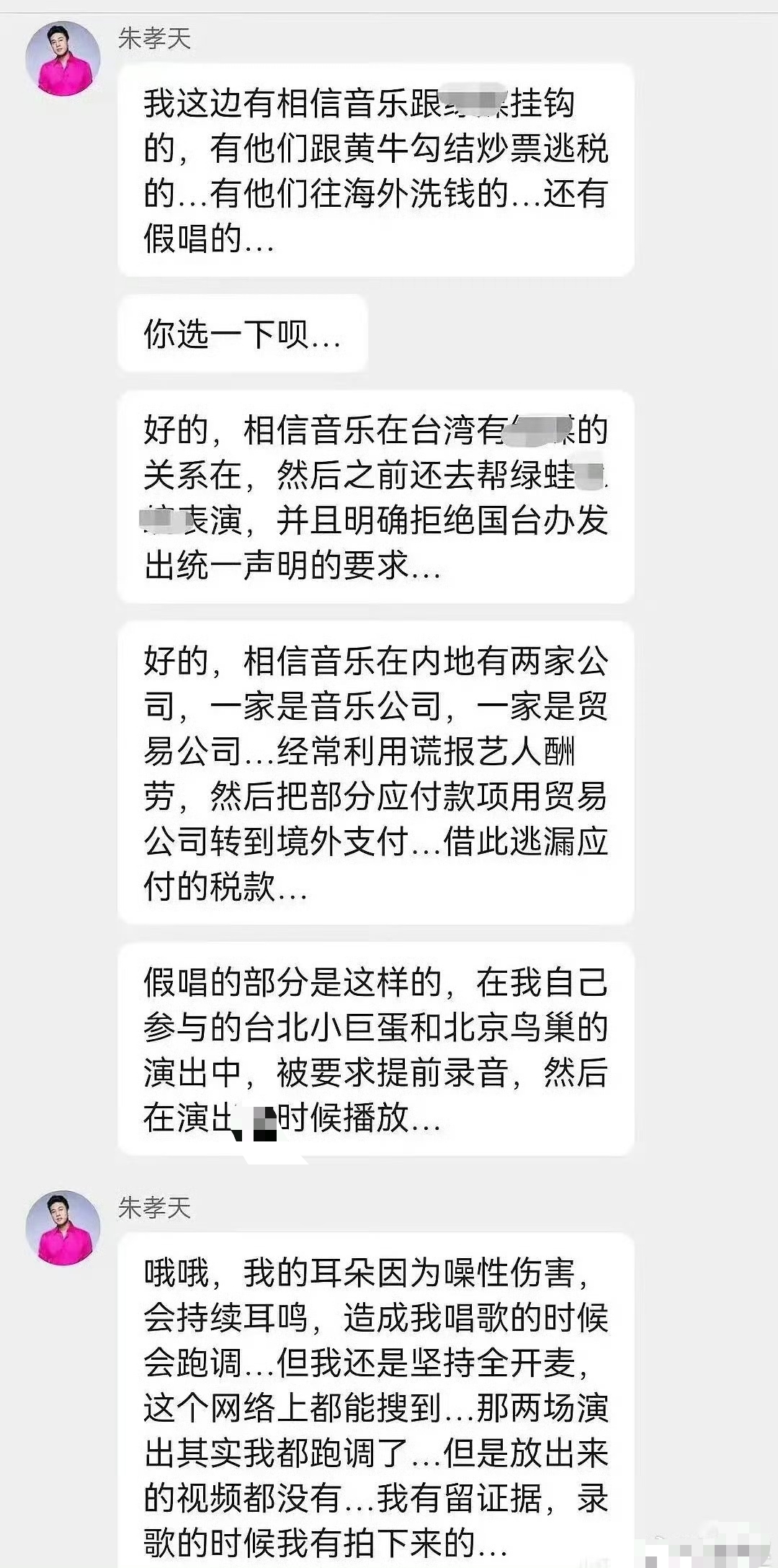 不仅如此,朱孝天还卷入了与五月天的纷争。他曝出五月天假唱、逃税、海外洗钱等猛料,这些言论在娱乐圈掀起了轩然大波。虽然他声称自己有证据,但这些指控的真实性尚未得到证实,反而让他自己陷入了更加被动的局面。有人认为他是被利益冲突激怒后的反击,也有人觉得他是无端生事,试图转移公众视线。