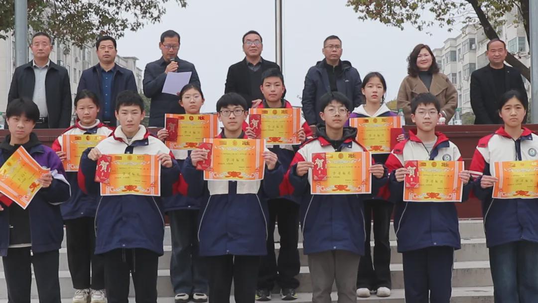 随后,学校领导宣读获奖优秀班干部、三好学生、进步之星名单,并组织颁奖。伴随着热烈的掌声,获奖学子依次登台收获荣誉。一份份荣誉证书,既是对同学们勤学善思、拼搏进取的肯定,也是对全体学子奋勇争先、追求卓越的激励。