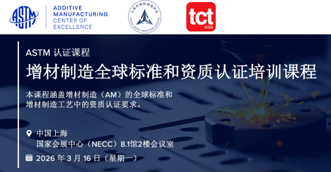 为此,3月16日(开幕前一天)TCT亚洲展将与ASTM International联合举办一场围绕「增材制造全球标准与资质认证」的专题培训,聚焦中国企业在进入美国及欧美市场过程中,最容易被忽视、却最关键的一环——标准如何真正影响市场准入与客户信任。
