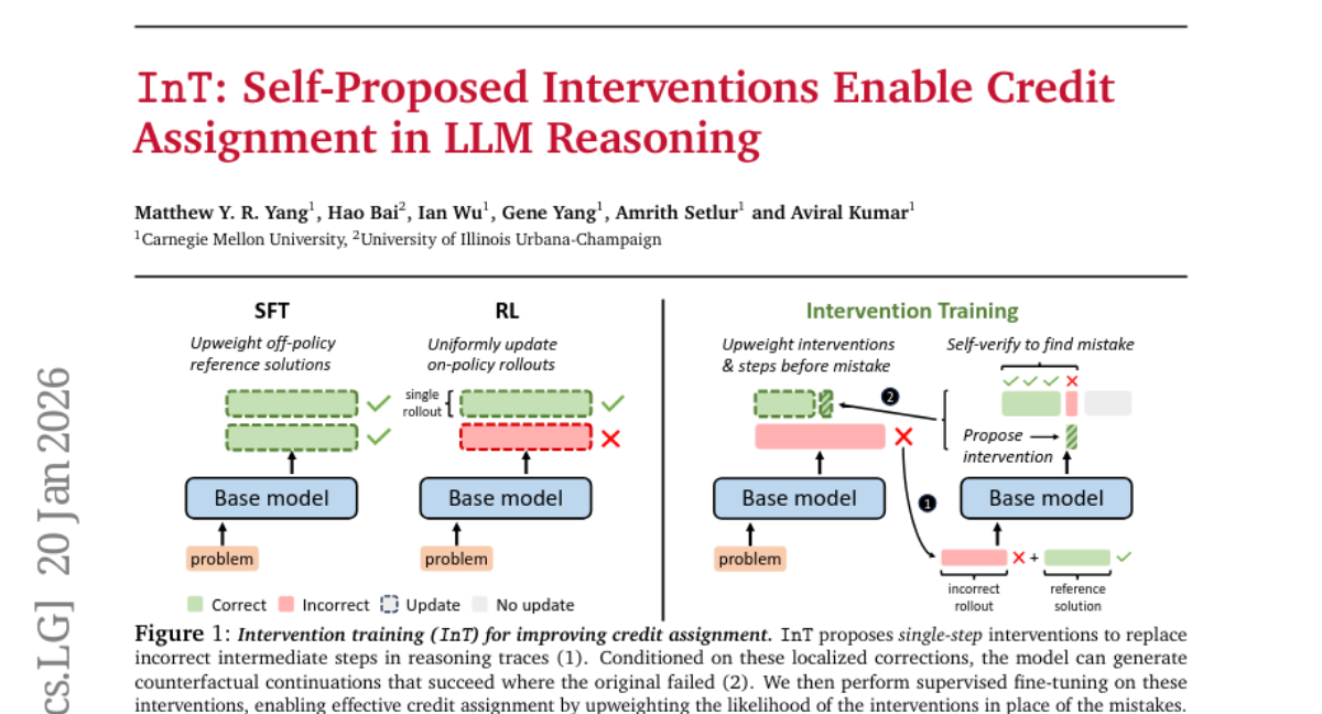 这项由卡耐基梅隆大学领导的研究于2026年1月发表,论文编号为arXiv:2601.14209v1,研究团队发现了一种让AI更聪明的训练方法,称为"干预训练"(InT)。这种方法教会AI在犯错时进行精准的自我修正,就像一个优秀的学生能够发现自己解题过程中的具体错误并加以改正。