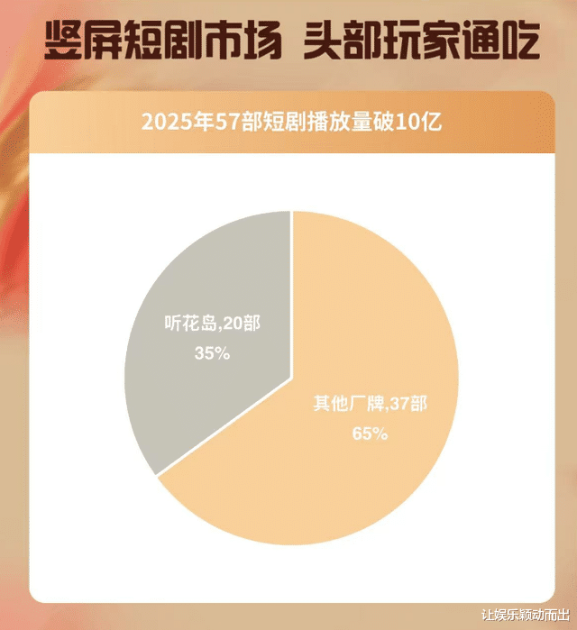 从整体短剧行业层面看,听花岛的头部位置建立在长期稳定的优质内容输出上。《2025腾讯娱乐白皮书》显示,竖屏短剧播放量破10亿的爆款作品共有57部,其中20部出自听花岛一家;《DataEye报告》显示,在2025年活跃制作方排名中,听花岛位列前五,但在全年热度破亿的10部短剧中贡献了9席。这种“数量并不极端靠前,但爆款命中率极高”的表现,本身就透露出“重质不重量”的鲜明创作取向。