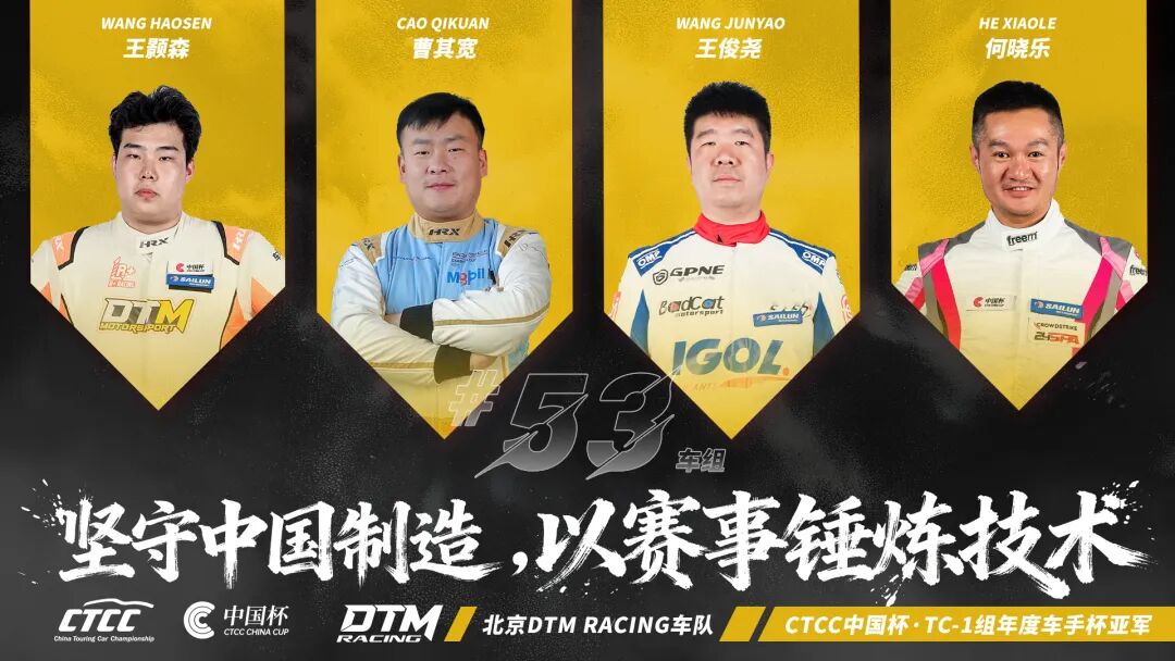 2025赛季,CTCC中国汽车场地职业联赛CTCC中国杯焕新拉开战幕。北京DTM Racing车队携自主研发的“大众高尔夫8 Racing Evo II”赛车强势出战TC1组别,由53号车组与63号车组组成的核心阵容,历经六站十二回合的激烈角逐,最终以包揽TC1组别年度冠亚军的辉煌战绩为赛季画上圆满句点。