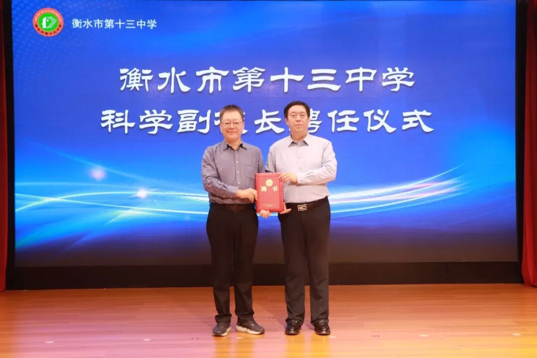升旗仪式后,衡水市教育局督学、衡水十三中党委书记白祥友为焦建彬教授颁发了科学副校长聘任证书,并对焦教授表示了热烈欢迎和衷心感谢。