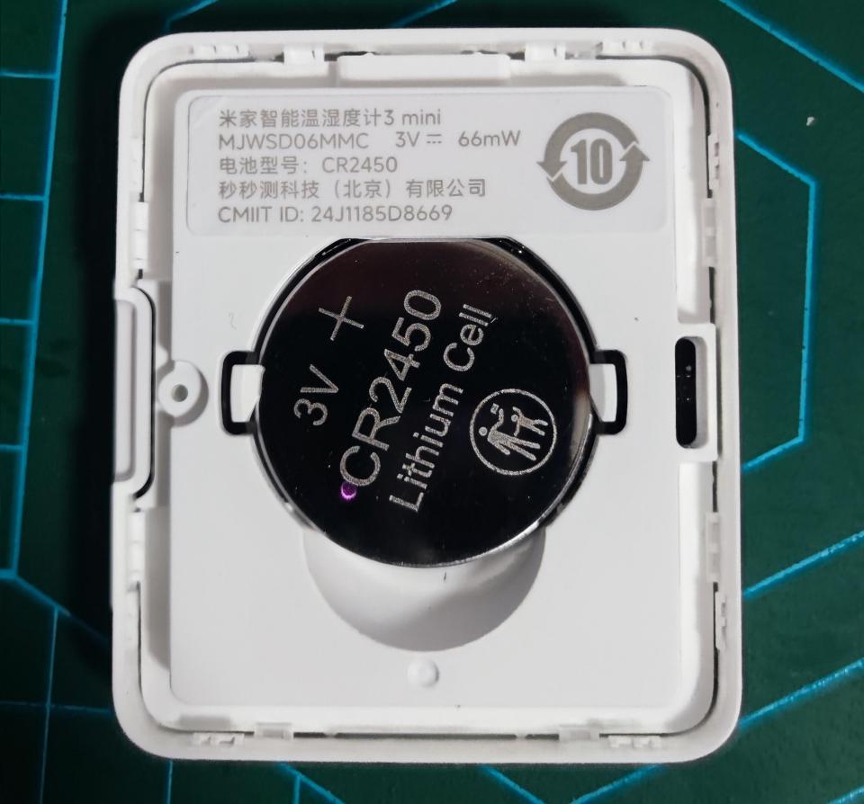 打开温湿度计后盖,就可以看到一枚CR2450电池,一枚CR2450电池就可以保证至少2年的续航。