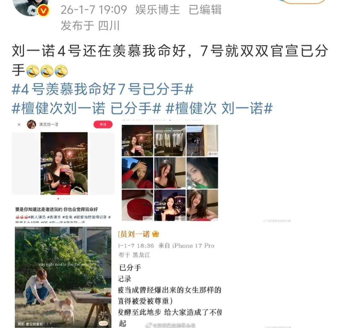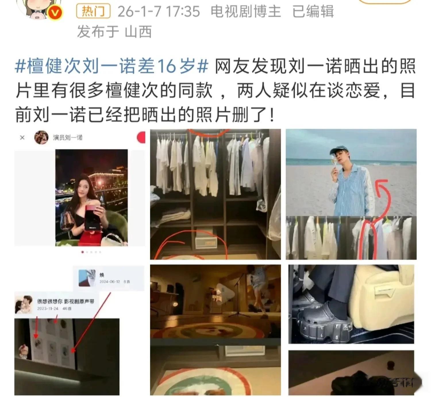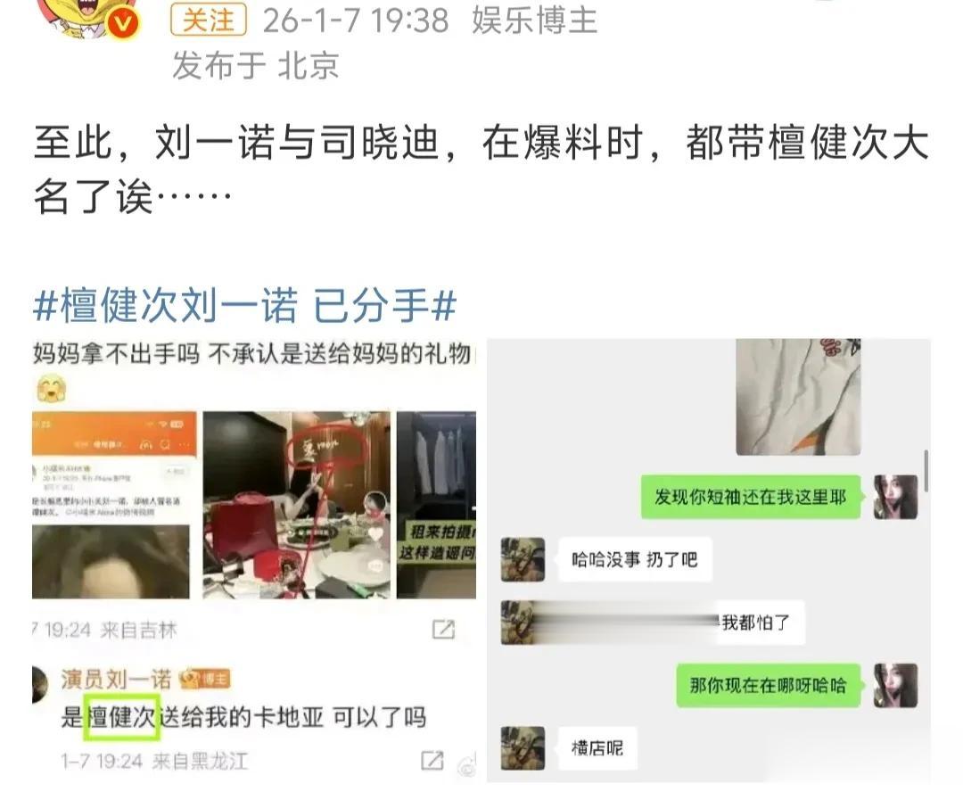 1月7号晚,檀健次刘一诺的相关话题席卷了热搜。