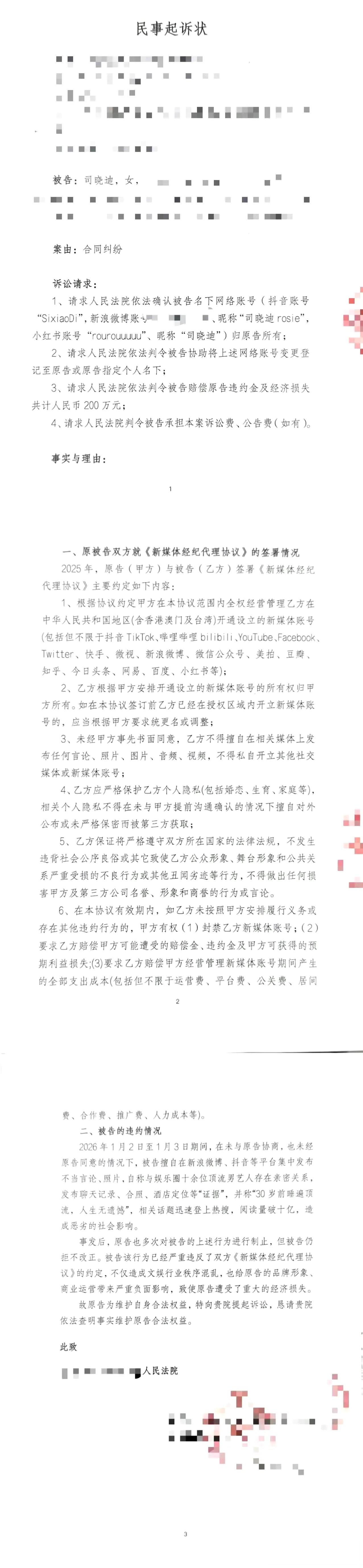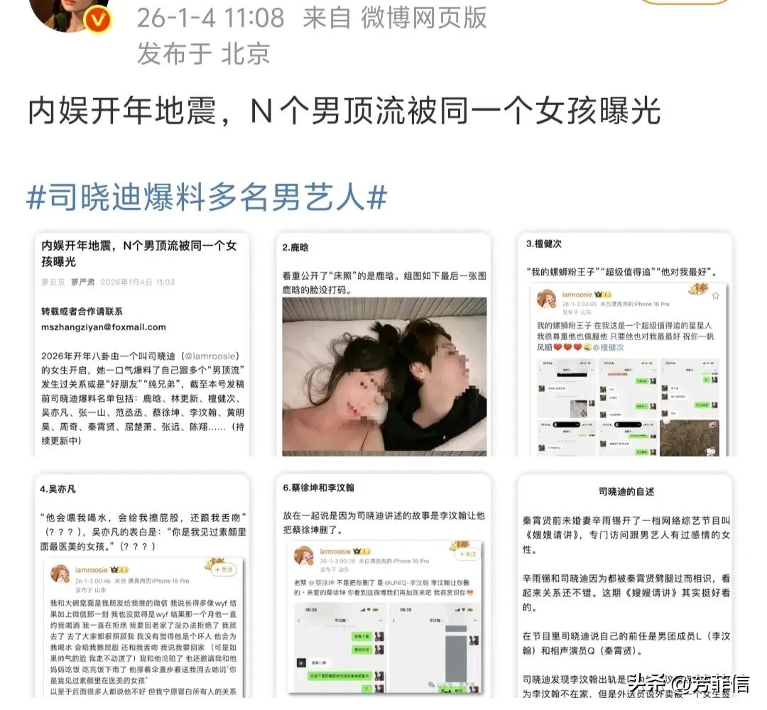 2026年的1月初,司晓迪在个人账号中公布了和多名男星的交往纪录,热搜轮番引爆,一度被称为内娱开年地震。