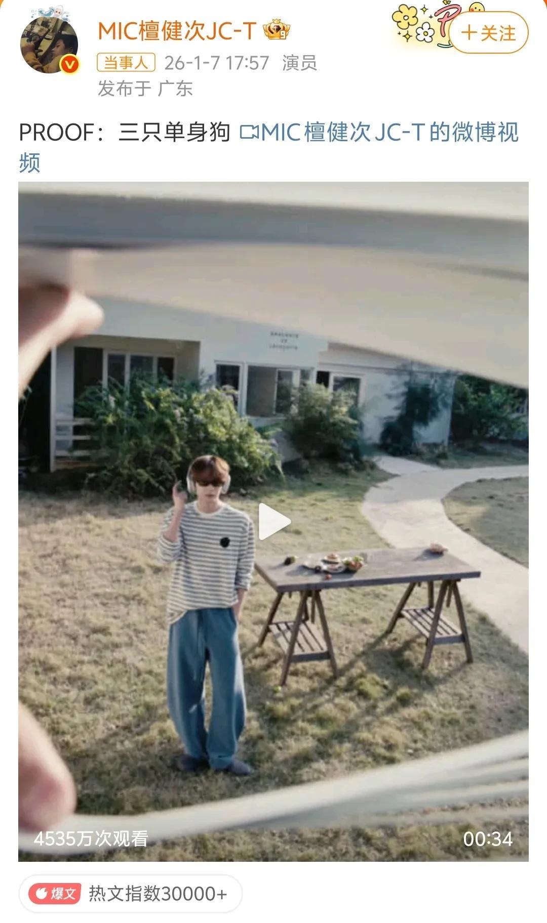 绯闻爆发引发舆论后,檀健次发博证明:三只单身狗。